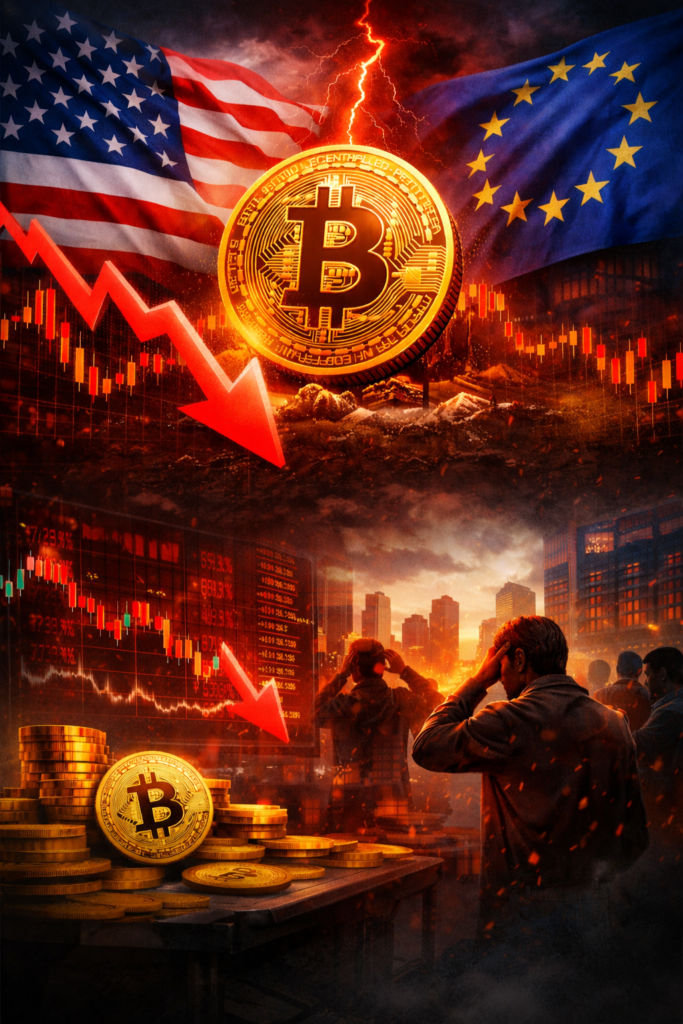 Bitcoin recua forte e acende alerta no mercado cripto após nova escalada de tensão entre EUA e Europa